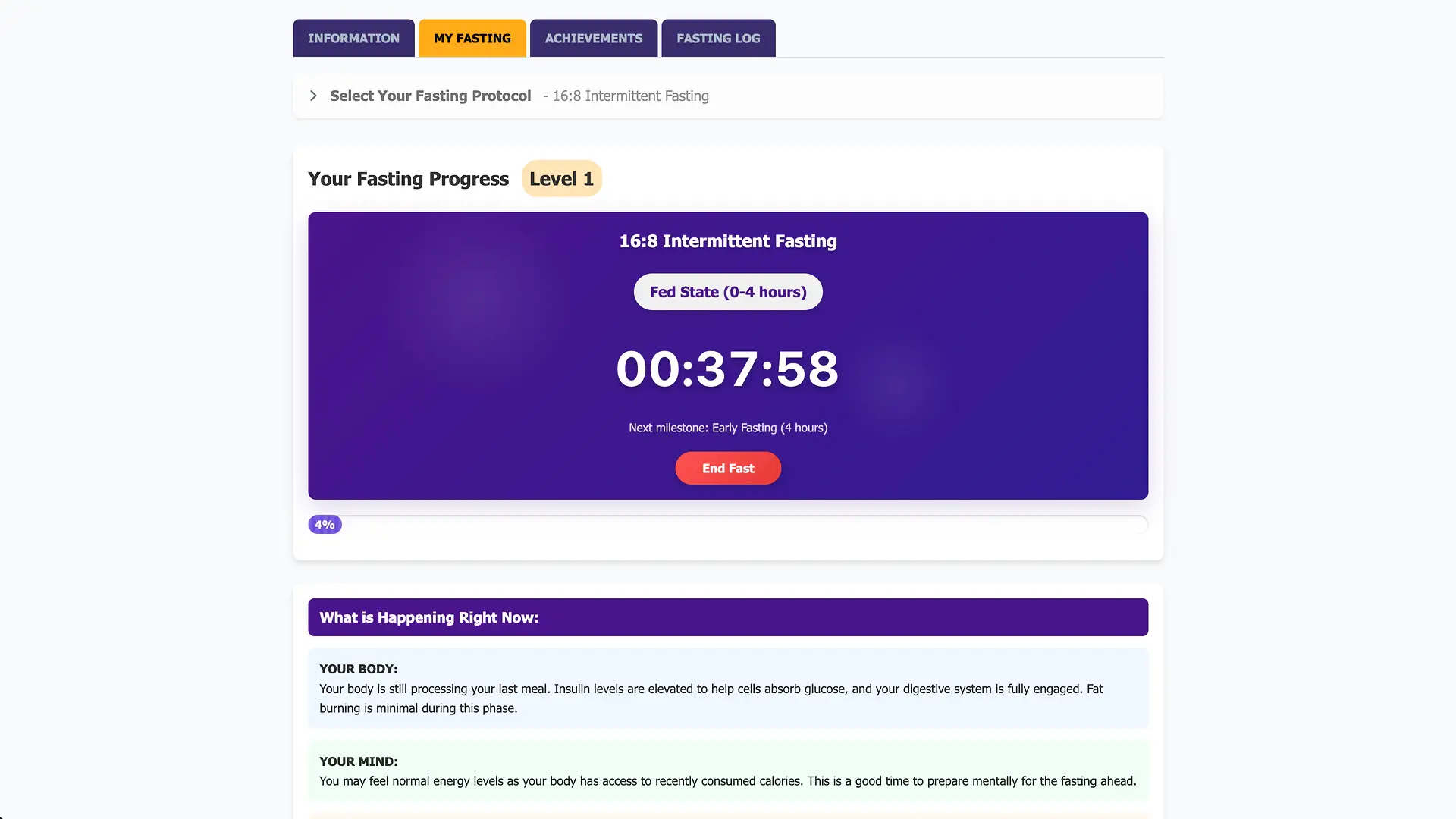 Master intermittent fasting with this gamified tracker. Support for 16:8, 18:6, 20:4, and custom protocols. Visual progress charts, smart reminders, and water intake tracking help you stay consistent and motivated throughout your fasting journey.